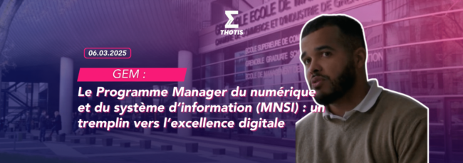 Au micro de Thotis, William, étudiant en deuxième année du programme Manager du Numérique et du Système d’Information (MNSI), décrit son programme suivi au sein de GEM Alpine Business School ! Il partage son expérience, détaille les enjeux du programme et expose les nombreux débouchés… Tu trouveras dans cet article tout ce qu’il faut savoir…