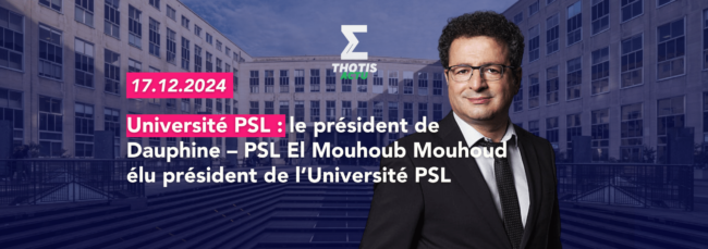 El Mouhoub Mouhoud est élu Président par le conseil d’administration de l’Université PSL. Sa candidature transmise à l’unanimité par le Directoire au conseil d’administration a été approuvée à la majorité de ce conseil (28 votes pour, 1 vote contre et 0 abstention). Son mandat, d’une durée de cinq ans, est renouvelable une fois. Ce vote témoigne…