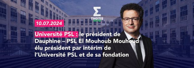 El Mouhoub Mouhoud, président de Dauphine – PSL, est élu président par intérim par le conseil d’administration de l’Université PSL (27 voix « pour », 4 voix « contre » et 0 abstention) et de la Fondation PSL (vote à l’unanimité). Les administrateurs de l’Université PSL et de la Fondation PSL élisent l’économiste El Mouhoub…