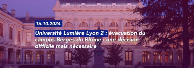 Dialogue et propositions : l’échec d’une tentative d’apaisement L’Université Lumière Lyon 2 est fortement engagée en faveur du droit à la poursuite d’études et examine attentivement chaque demande des étudiants sans affectation. Toutefois, elle ne peut accepter de procéder à des inscriptions sous contrainte, sans validation pédagogique, et au détriment des nombreux étudiants inscrits sur…