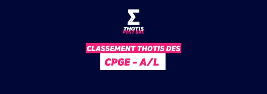 Découvrez le classement Thotis des Prépas A/L par Thotis. Pour donner de la visibilité aux différentes formations sur le territoire, nous avons classé les CPGE A/L en fonction de 4 critères de sélection.