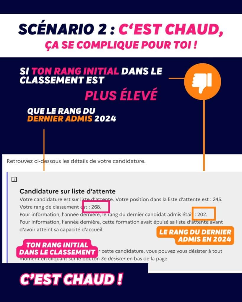Si ton rang initial dans le classement est plus élevé que le rang du dernier admis en 2024, alors ça semble plus compliqué !