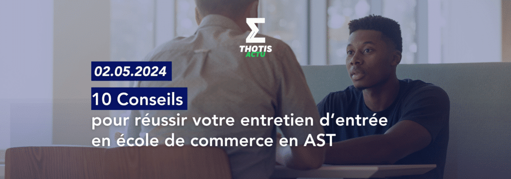Les écoles en AST vous proposent des entretiens parfois différents. Voici les principales modalités sur lesquelles il faut bien vous renseigner et vous entraîner. – les entretiens avec questionnaire : NEOMA, KEDGE… – les quatre questions de l’EM Lyon et la présentation en une minute – l’épreuve de l’EDHEC en trois parties (dont une présentation en 4 minutes et un entretien collectif). – les entretiens avec exposé : Audencia, GEM, TBS, RENNES… ; – l’entretien inversé de GEM – le CV projectif de SKEMA.