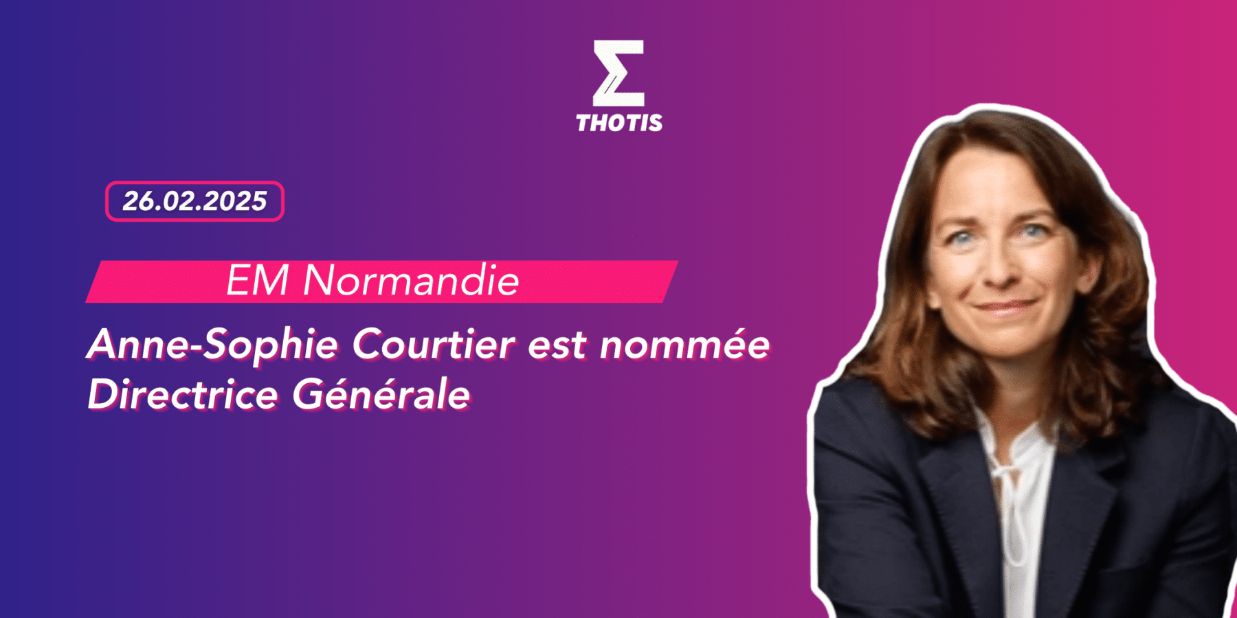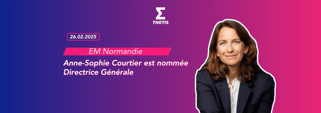 L’EM Normandie annonce la nomination de Anne-Sophie Courtier, actuelle Directrice des programmes et membre du comité exécutif, au poste de Directrice Générale. Élue par le comité de sélection, elle prendra officiellement ses fonctions le 24 mars 2025. Dans l’intervalle, le Président du Conseil d’Administration et le COMEX continueront d’assurer l’intérim.