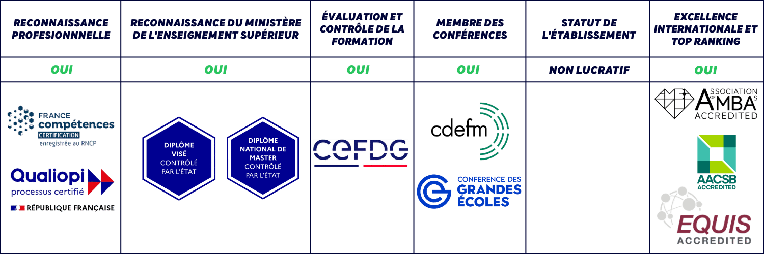 Avec l’outil Thotis, tu peux vérifier en un clic la reconnaissance officielle des diplômes de l’EDHEC : Parcoursup, RNCP, CEFDG, Conférence des Grandes Écoles (CGE), et bien plus encore.