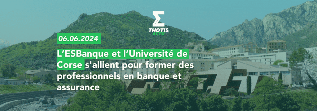 Le 5 juin, L’École supérieure de la banque (ESBanque) et l’université de Corse ont signé un partenariat. Ce partenariat stratégique vise à renforcer le développement économique, social et culturel en offrant des formations de pointe sur le campus de Corte. Le Master Monnaie, Banque, Finance Assurance option Parcours Conseiller clientèle de professionnels (CCPro) est destiné à former alternants et professionnels du secteur bancassurance.