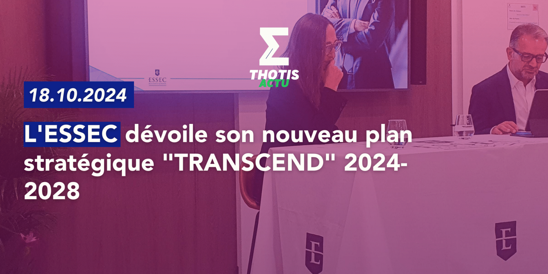 « TRANSCEND », nouvelle feuille de route de l’ESSEC pour la période 2024_2028, a été élaborée autour de valeurs-clefs résumées ainsi « Future – Fit Business Education ». Avec ce nouveau plan stratégique, l’ESSEC se donne pour mission principale de « transcender » les barrières -en termes de formation (en proposant davantage d’hybridation dans ses formations et ses partenariats), les frontières géographiques et culturelles, les frontières du management (avec l’Exécutif Education).