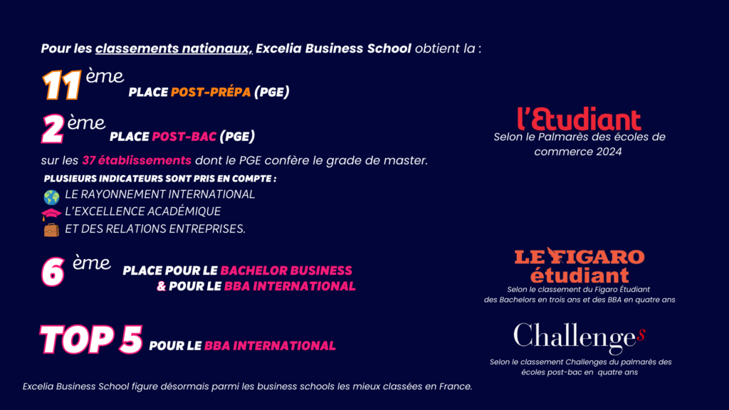 À l’international, Excelia Business School gagne également en reconnaissance, consolidant ainsi sa place parmi les écoles de commerce françaises les plus prestigieuses.