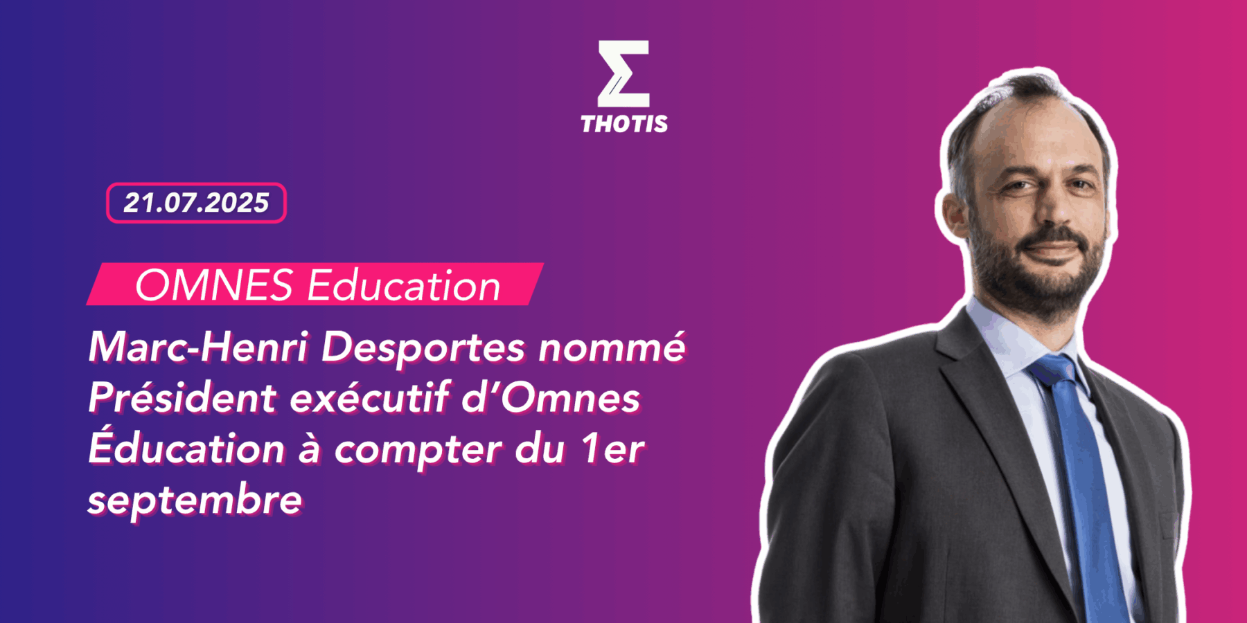 À compter du 1er septembre 2025, Marc-Henri Desportes prendra la tête du groupe OMNES Education en tant que Président exécutif. Il succède à José Milano, qui occupait cette fonction depuis juillet 2023.