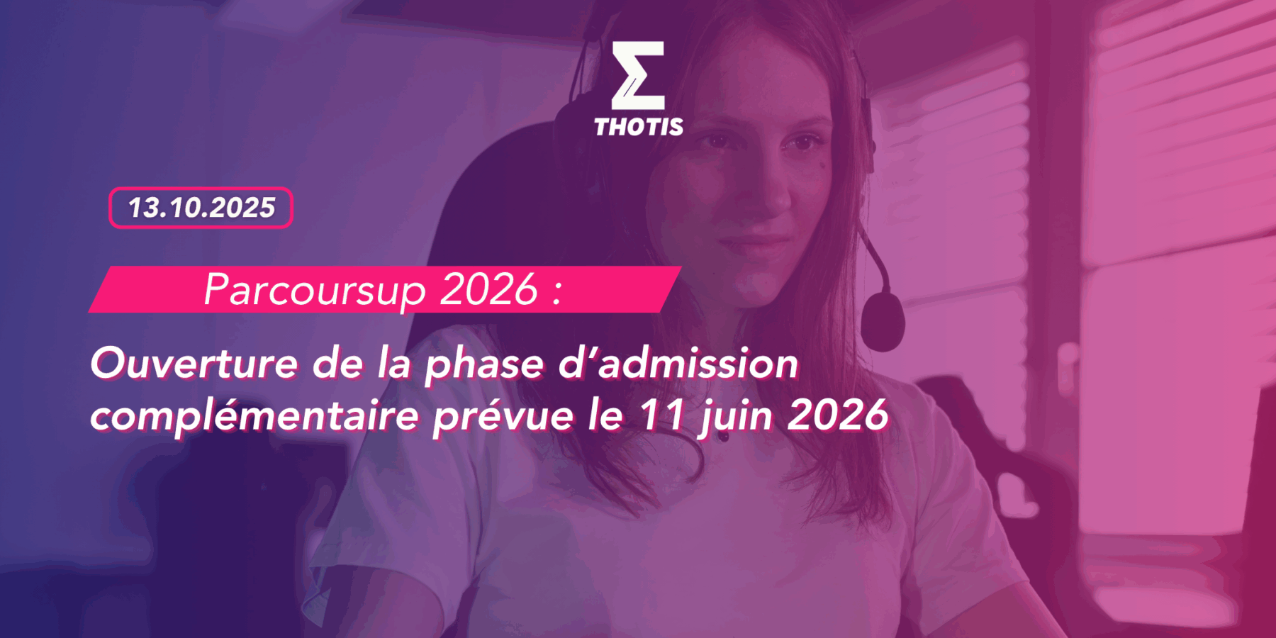 La phase principale d’admission Parcoursup, débute le 2 juin 2026 et se termine le 11 juillet 2026. Tout savoir sur cette étape, avec Thotis ! En 2026, la phase complémentaire débutera le 11 juin. En amont de la semaine des épreuves écrites du baccalauréat, c’est une opportunité de construire de nouvelles perspectives, en particulier pour les candidats qui n’auraient pas encore eu de proposition.