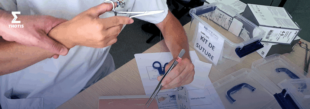 En lien avec cet article : notre page dédiée aux études de médecine ! Du 24 au 29 juin 2025, 25 étudiants -élèves-ingénieurs, étudiants en médecine et en soins infirmiers- ont participé à une semaine riche, rythmée par des ateliers thématiques variés. Au programme : création d’une start-up fictive intégrant une technologie médicale, accompagnée par le dispositif Pépite ; séances pratiques sur la plateforme INSPEAR de simulation en santé ; apprentissage des sutures et de la fixation de drains ; atelier de réalité virtuelle animé par les étudiants de 3iL ; checklist de sécurité au bloc opératoire ; manipulation d’instrumentation chirurgicale ; et découverte de la cœlioscopie grâce à du matériel biomédical. Cette immersion a offert aux participants une compréhension concrète des enjeux, des opportunités et des défis spécifiques à chaque discipline. Atelier de point de suture au sein du CHU de Limoges – Richard, étudiant ingénieurs à 3iL Ingénieurs. (Crédit : Valentine Dunyach) Au CHU de Limoges, la professeure Niki Christou, chirurgienne et chercheuse, pilote le projet PrépaBloc, une initiative originale visant à favoriser le dialogue entre professionnels de santé. L’objectif de cette semaine intense : s’ouvrir aux autres. “PrépaBloc, ce n’est pas nécessairement pour créer des vocations ou monter des entreprises ensemble, précise-t-elle. C’est avant tout une opportunité de mieux comprendre les contraintes des autres services, de créer du lien, de sortir de son quotidien professionnel.” Au cœur du Centre de simulation du CHU, sur plus de 1 000 m² d’espaces immersifs, étudiants et personnels hospitaliers sont invités à se confronter à des situations proches du réel. L’idée : lever les barrières entre les métiers, développer des compétences transversales, et encourager l’innovation par la collaboration.